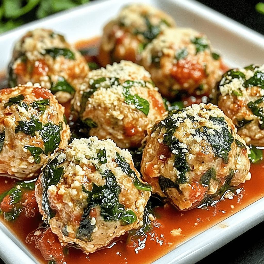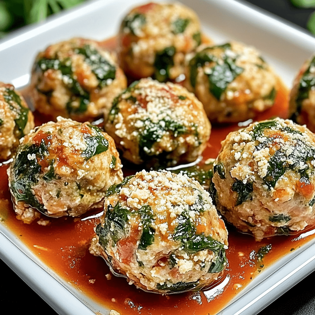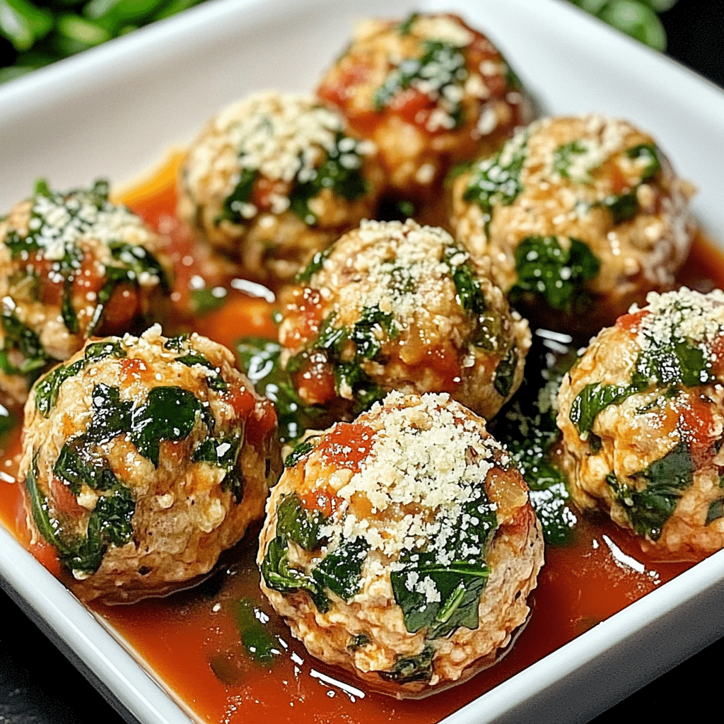 What sets these meatballs apart is their balance: the richness of ricotta, the freshness of spinach and herbs, and the savory punch of garlic, Parmesan, and oregano. After baking, they’re simmered in marinara sauce until juicy and perfectly infused with Italian flavor. Serve them over pasta, zoodles, or tucked into a crusty sub roll for a hearty meal that’s both comforting and nutrient-dense. This dish works beautifully for weeknight dinners, meal prep, or entertaining guests. It’s also freezer-friendly, making it a smart choice for make-ahead meals. Whether you’re looking for a protein-packed dinner or a new way to enjoy ground chicken, these meatballs deliver big-time in taste, texture, and simplicity.